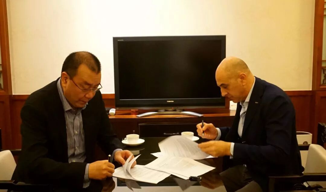 意大利纱帝(SAATI)公司的首席执行官Mr. Antoine Mangogna 和纱帝技术网布(天津)公司的中国区总经理陆骅先生出席签约仪式。